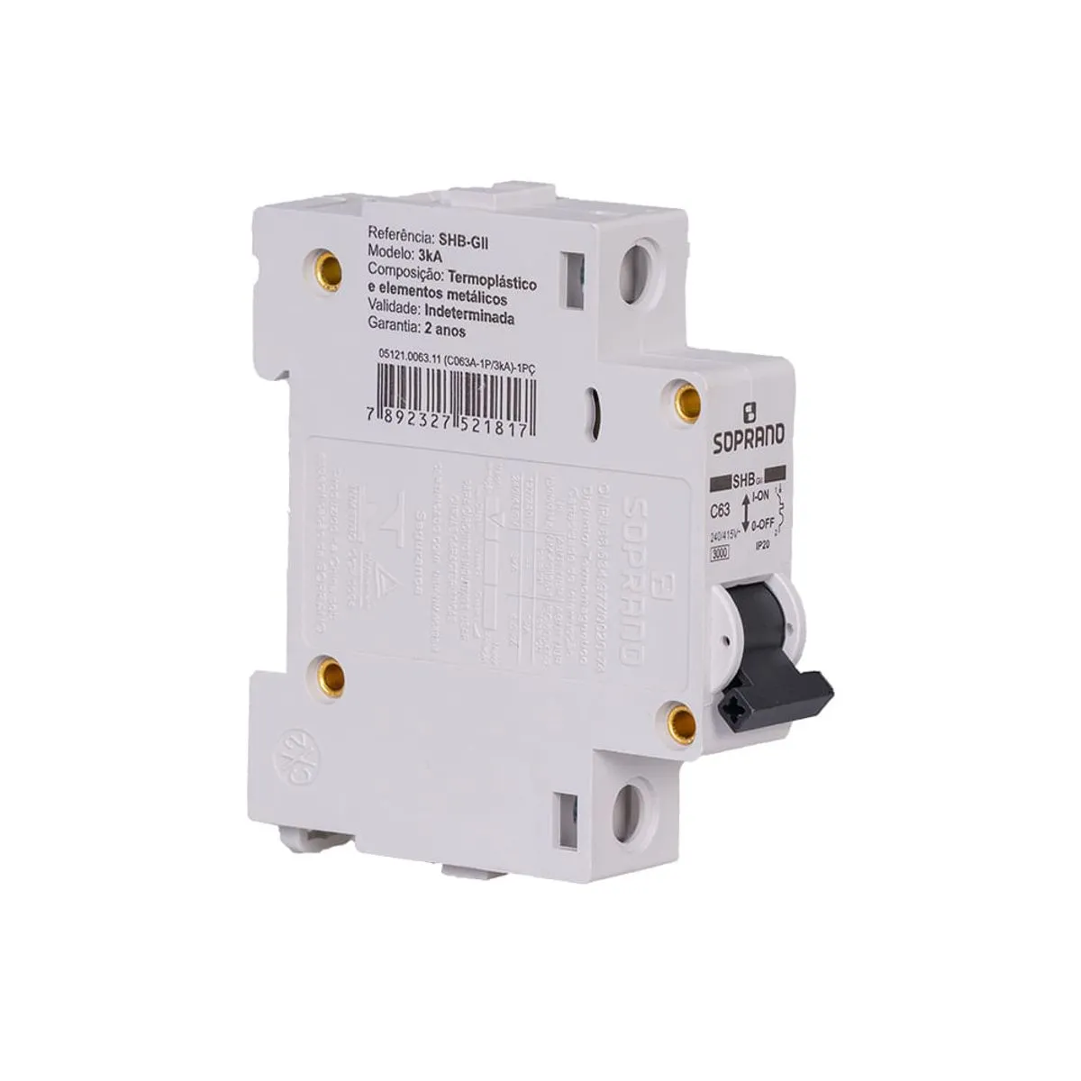 SOPRANO DISJUNTOR MONO 63A DIN CURVA C 3/5KA SHB1 05121.0063.11